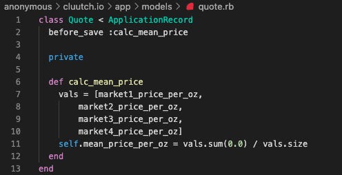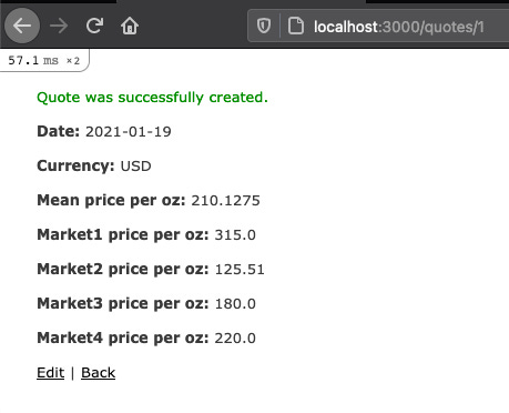 We can now create our first entry by spinning up the server with `rails s`. Now when we create a quote, the mean is automatically computed.