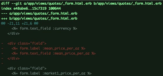 ~ rails g scaffold quote date:date currency:string mean_price_per_oz:decimal market1_price_per_oz:decimal market2_price_per_oz:decimal market3_price_per_oz:decimal market4_price_per_oz:decimal