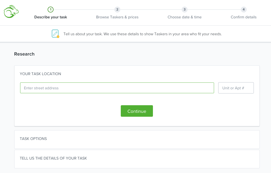 After picking an arbitrary location and trying it out anyways, I found that the pricing model is a little better than Fiverr’s. Taskers charge by the hour and I assume that time could be broken up throughout the week. Even within the same city, there is a big range of $20 - $90 / hour where the system recommends taskers.