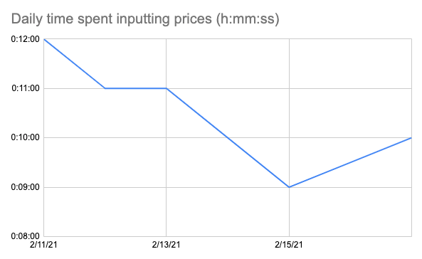 On average it takes me 10m36s to input the 12 prices (4 locations, 3 prices taken from each). That’s about 53s per price. This is higher than the 45s I originally estimated the task would take. Adding 11min of boring data collection everyday in on top of new content generation is asking a lot. Its time to start automating the collection of weed prices.