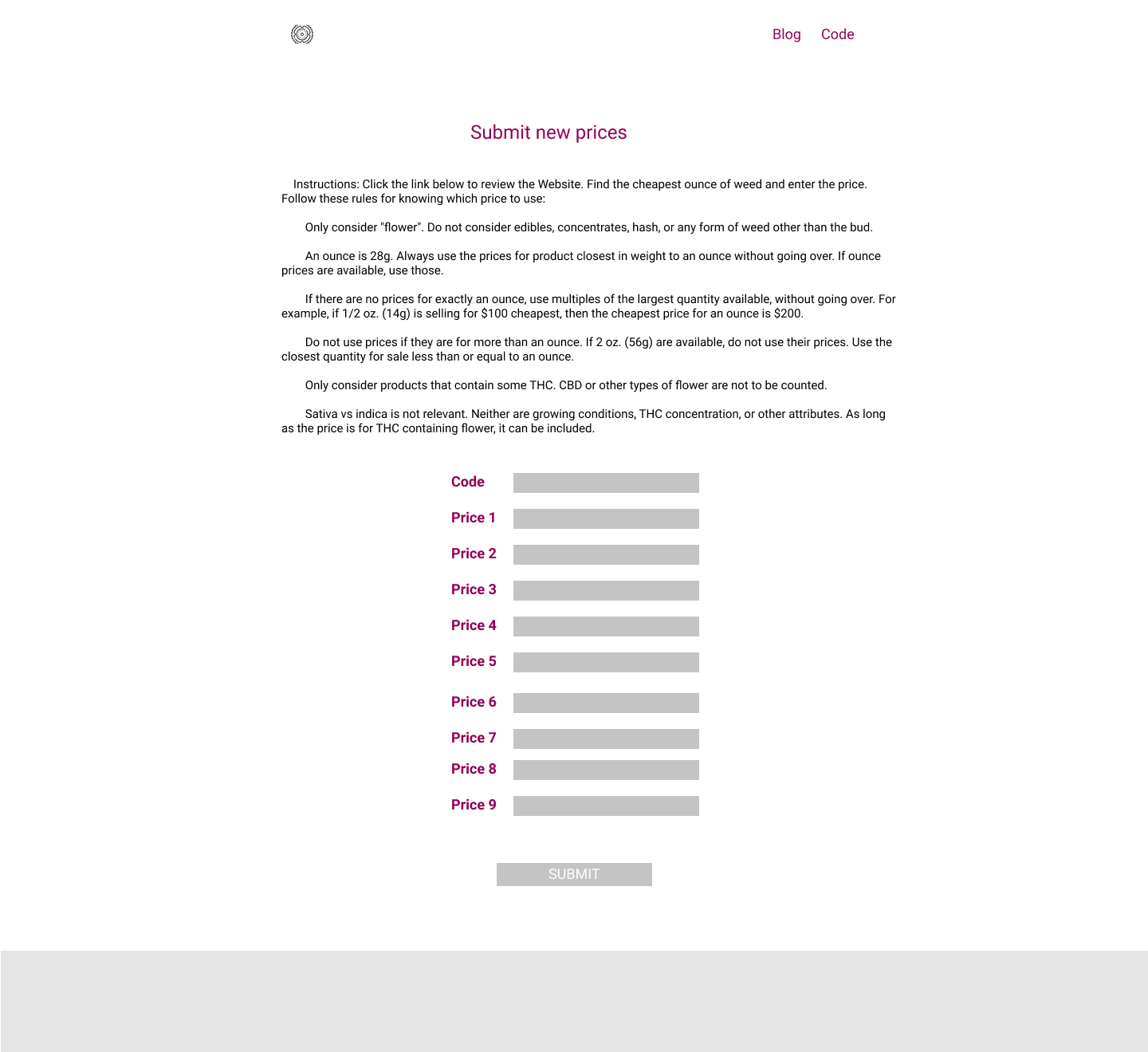 (1) As someone who records weed prices on cluutch, I should be able to follow a link to a quote form that is prefilled with all necessary information except for the price, so that it doesn’t take so long. [Completed: Github]